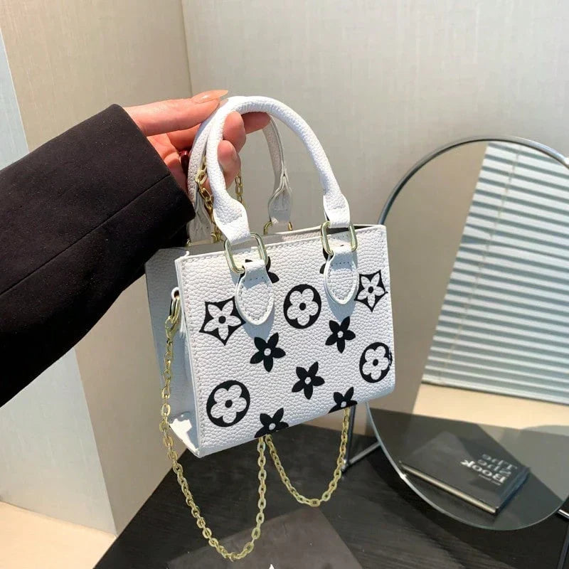 Small Floral Print Contrast Color Handbag For Women, Fashion Portable Shoulder Crossbody Casual Tote Bag, Versatile For Shopping